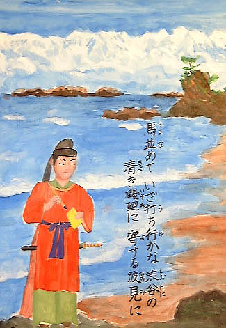 高岡市内小学生の「自分で考えた家持さんの絵」約100点を展示。